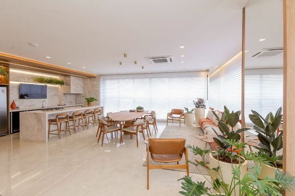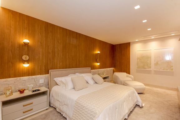 A cozinha é totalmente equipada com eletrodomésticos de alta qualidade e armários planejados, perfeita para quem adora cozinhar. Os quartos são espaçosos e confortáveis, com guarda-roupas planejados e banheiros modernos.