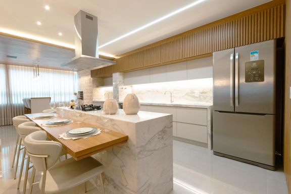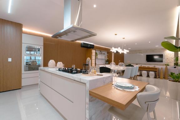 Adentre na sala ampla, projetada para oferecer uma experiência de convivência perfeita, com uma cozinha integrada que proporciona um ambiente harmonioso e funcional. Você pode desfrutar de momentos inesquecíveis com amigos e familiares enquanto prepara suas refeições favoritas. E para os amantes da culinária, um espaço gourmet está à sua disposição, oferecendo o local ideal para demonstrar suas habilidades culinárias.