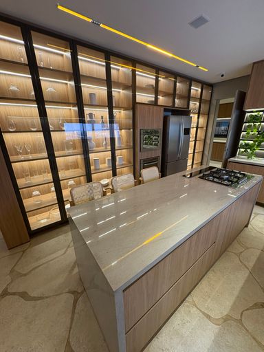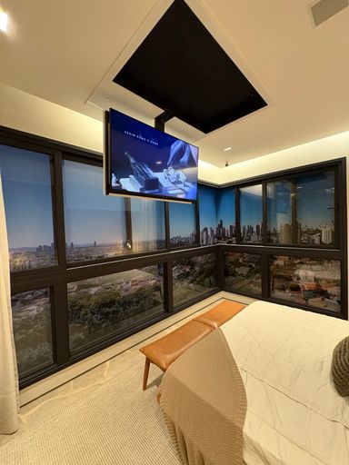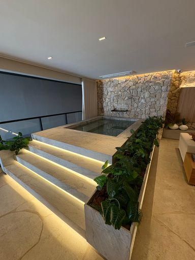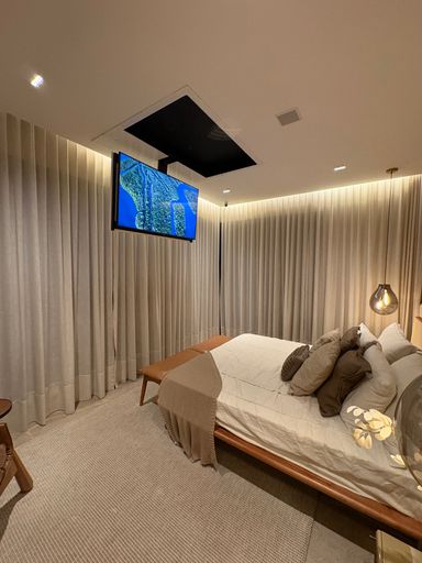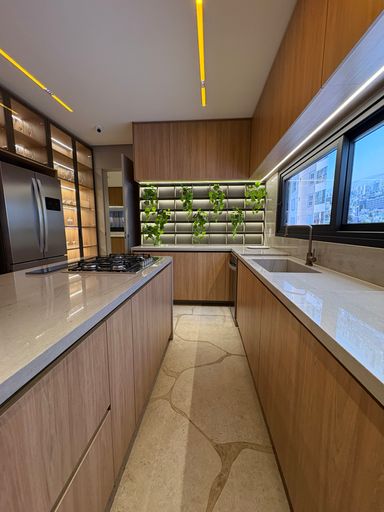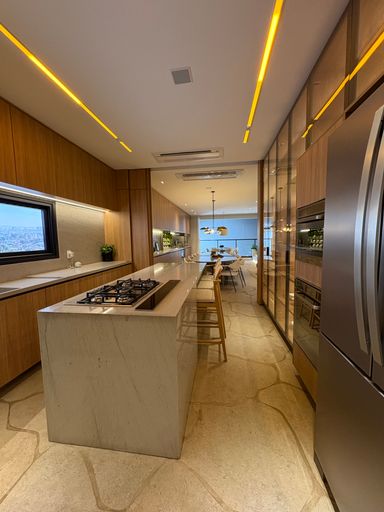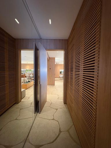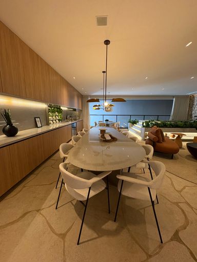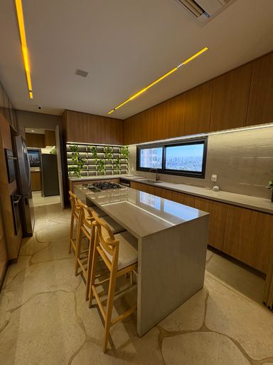 Apto 1 por andar, com 265m2, planta modificável de 3 ou 4 suites, e 3 vagas de garagem.